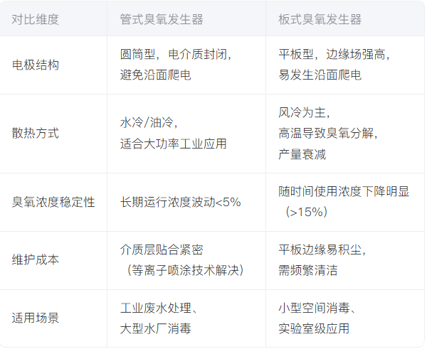 电极封闭设计避免沿面放电,臭氧产量稳定,适合连续运行(如24小时工业水处理)。